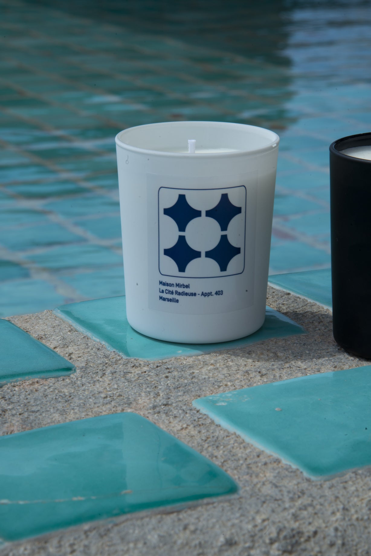 La bougie parfumée ravive l'expérience du parcours dans la Cité Radieuse de le Corbusier.