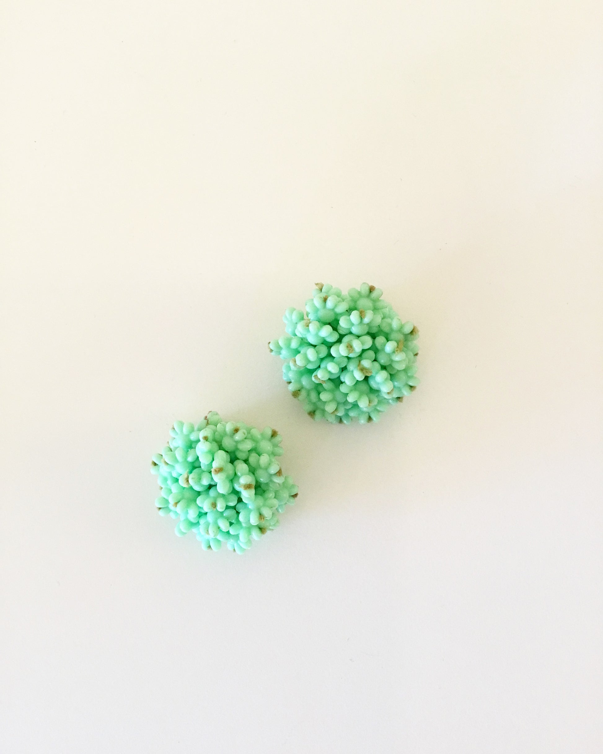 Small flowers, pale green seed beads, plastic
