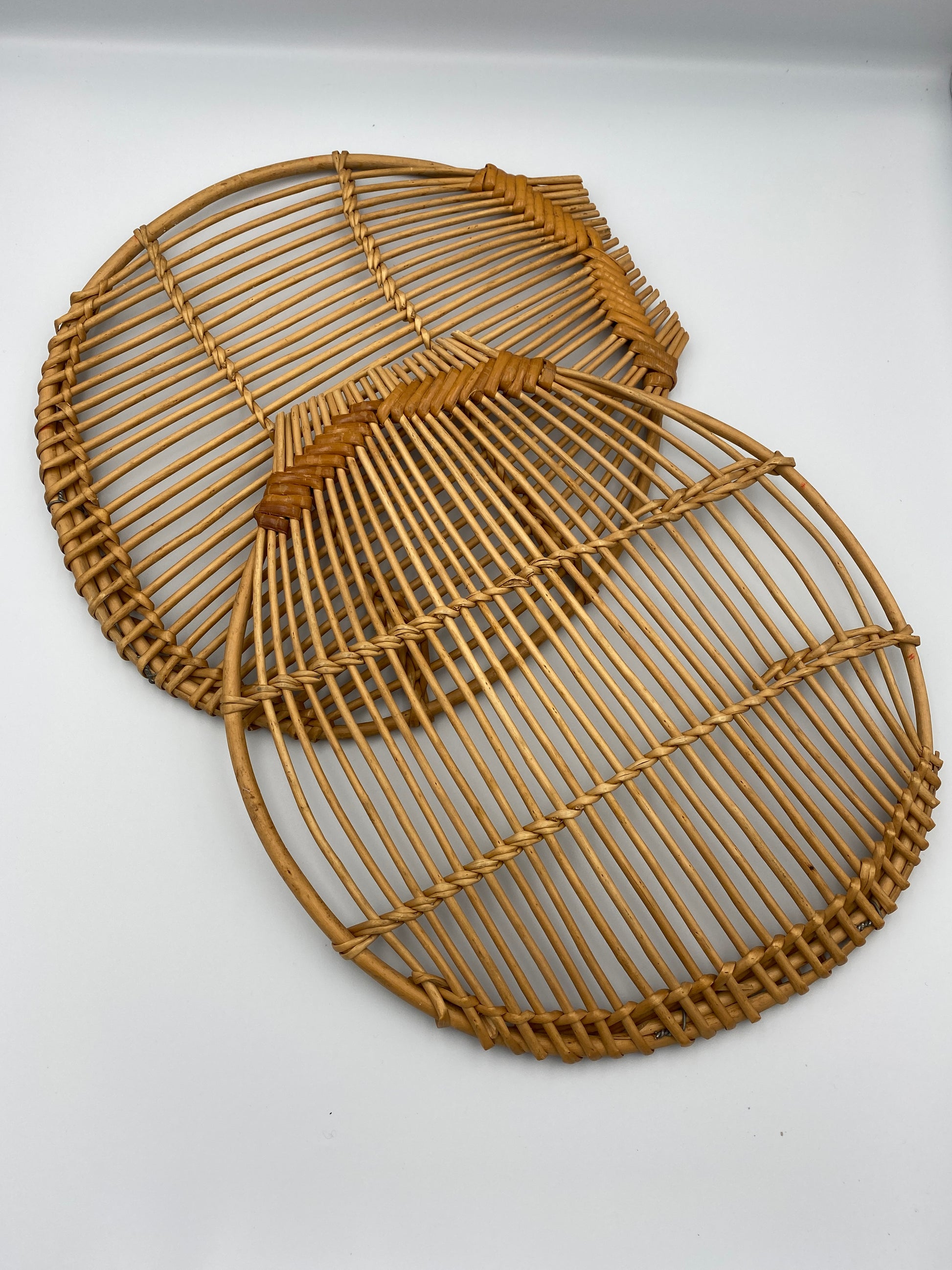Maison Mirbel présente ses deux corbeilles à fruits, rondes en rotin, en parfait état.
