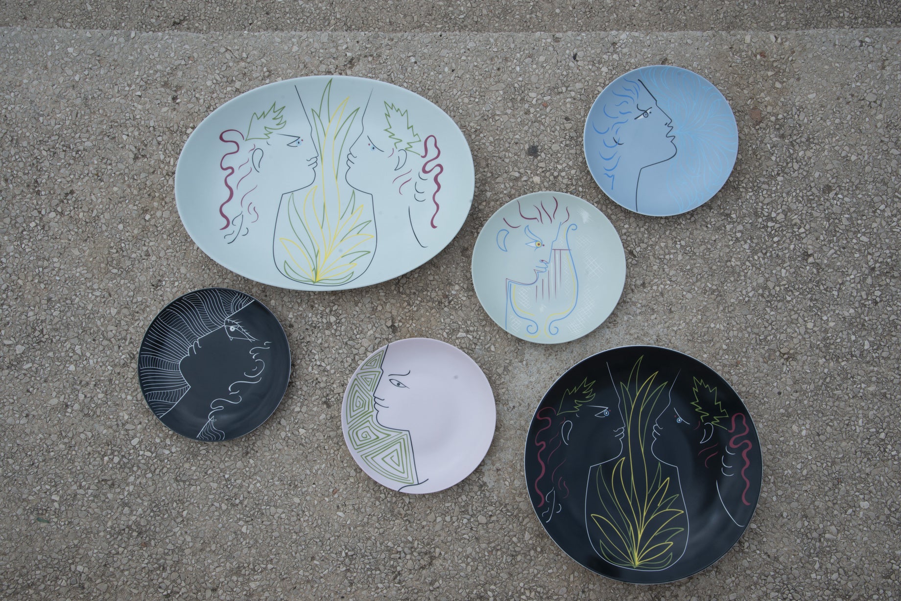 Drawings by Jean Cocteau on Limoges porcelain by Raynaud.