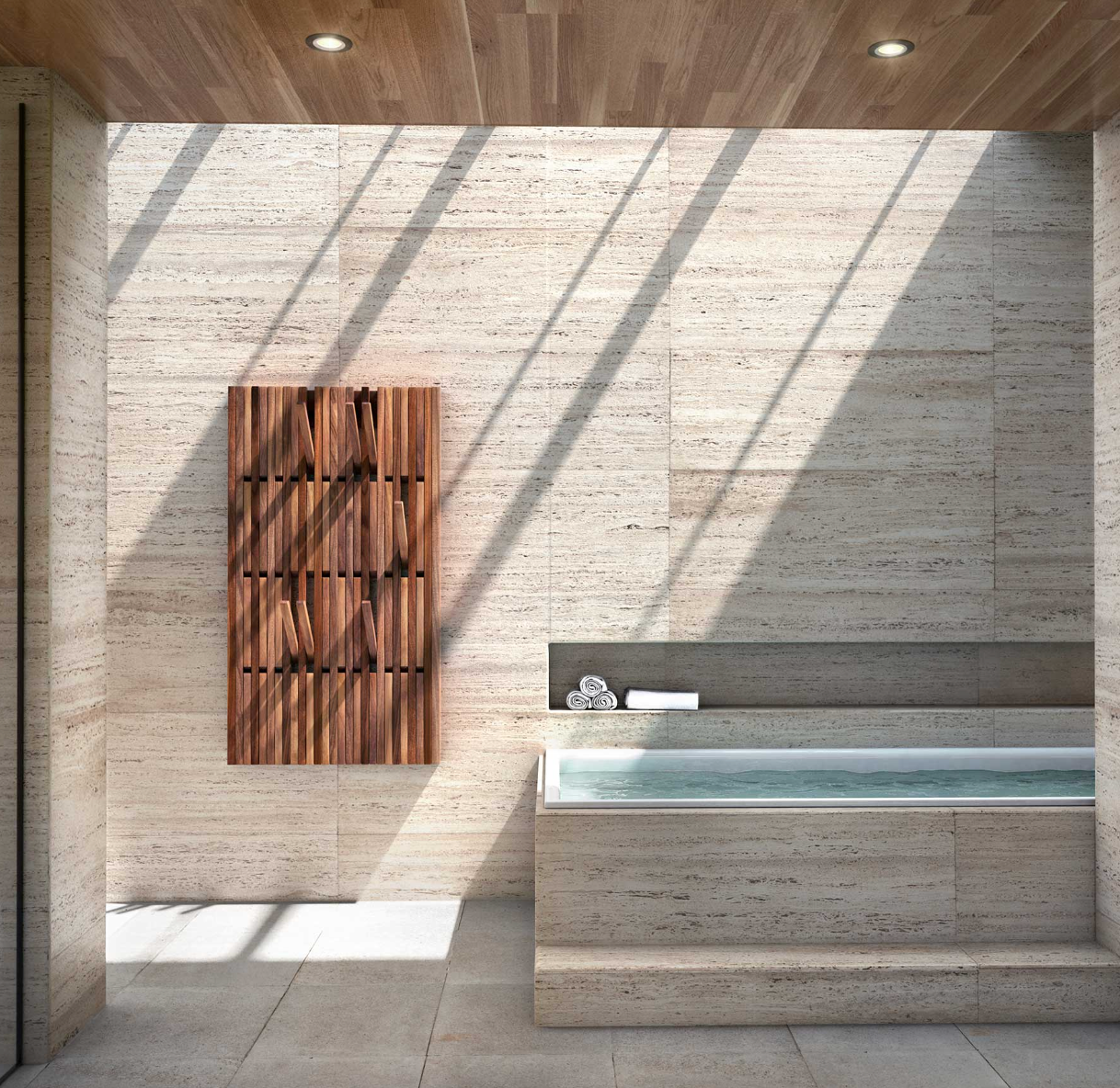 Solid oak, walnut or beech for the interior, and teak for the exterior