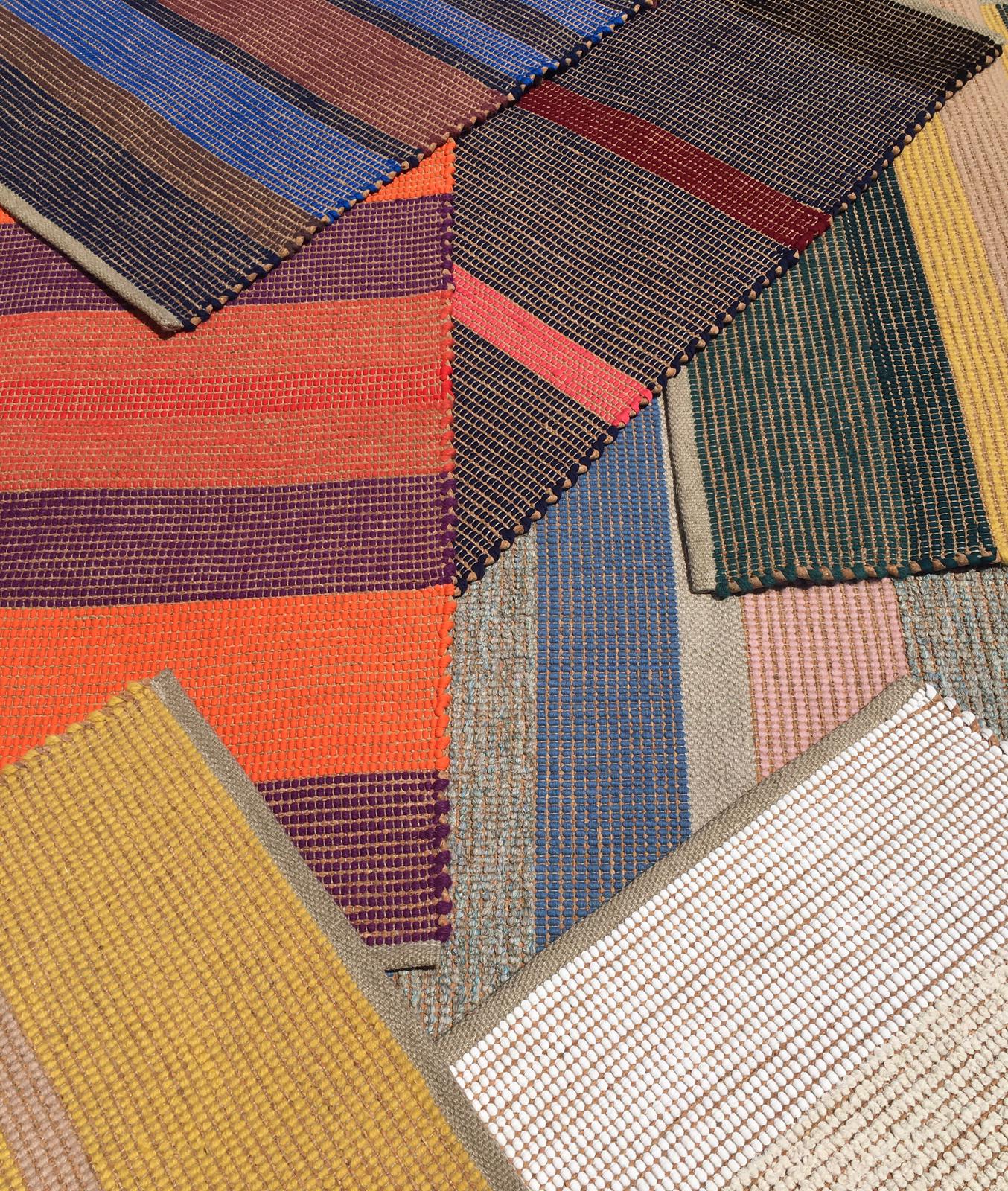 En 2022, suite à notre souhait d'éditer des objets particuliers, nous sollicitons la plasticienne Céline Leroy pour concevoir une collection de tapis, déclinée en 6 coloris et 2 tailles.