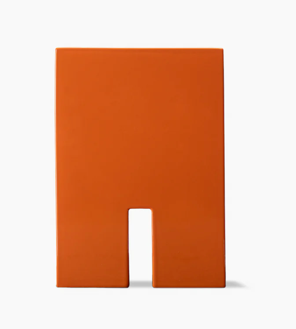 Vase réalisé par coulage en barbotine en argile blanche. Glaçure transparente orange ou verte.
