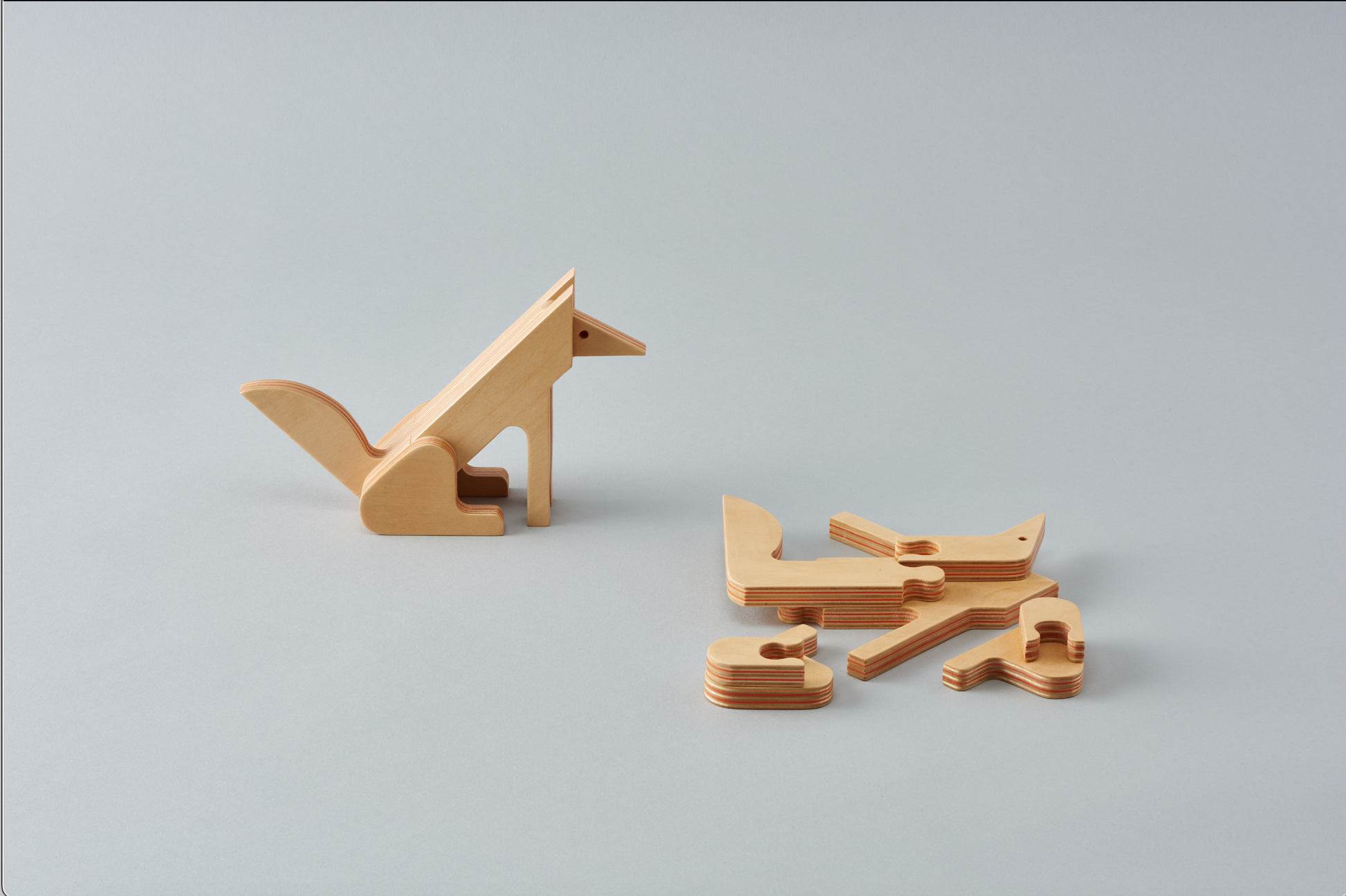 Maison Mirbel collabore avec PLYWOOD Laboratory depuis 2016, notamment autour des Animaux Puzzle (ours, renard et écureuil) ainsi que des plateaux vide-poches.