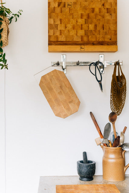 Indestructible, technique et fruit d'un savoir-faire immémorial, le billot traditionnel du boucher a inspiré l'architecte et designer François Bouvet une marque à part entière. Adapté aux cuisines de toute taille, il prend désormais la forme de planches massives, ou pas, parfois "décalées. De charme et de chêne, c'est à partir de bois français que chaque pièce est réalisée chez un ébéniste du Loiret, passant par une trentaine d'étapes de fabrication pour des finitions impeccables, une solidité optimale et une texture profonde, délicate et veloutée.