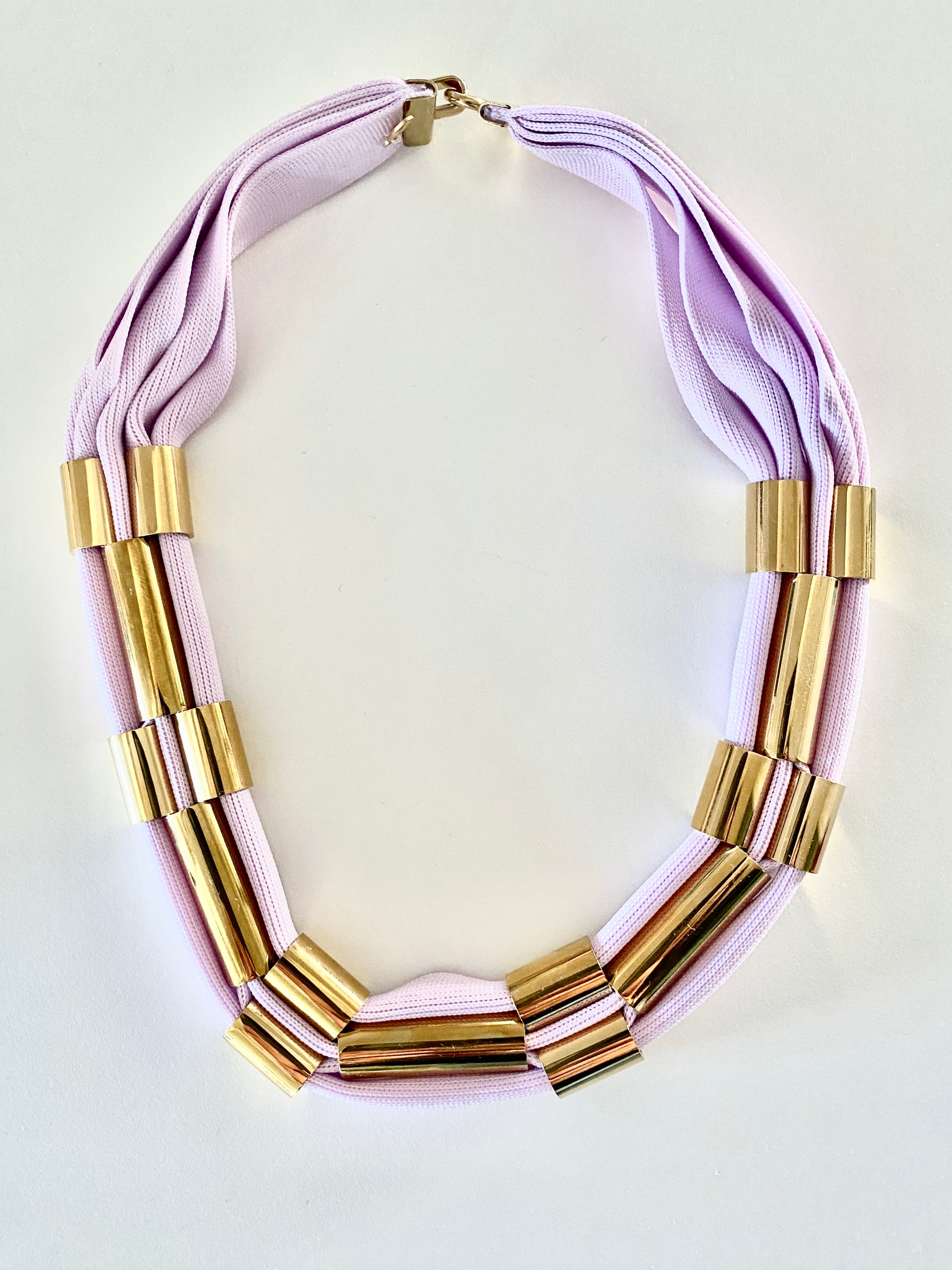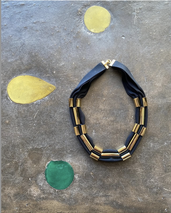 Matières : acier doré à l'or 24 carats + ruban noir en jersey polyester
