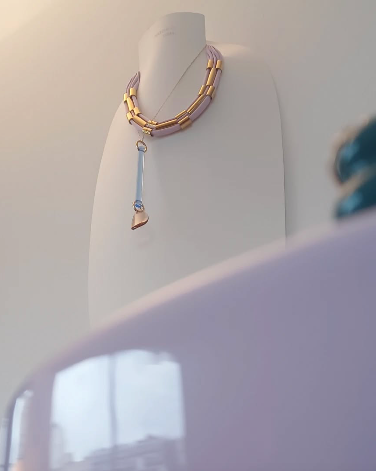 Ce bijou de la collection "Chaîne et Trame" est réalisé dans l'atelier parisien de Marion Vidal, avec le plus grand soin.