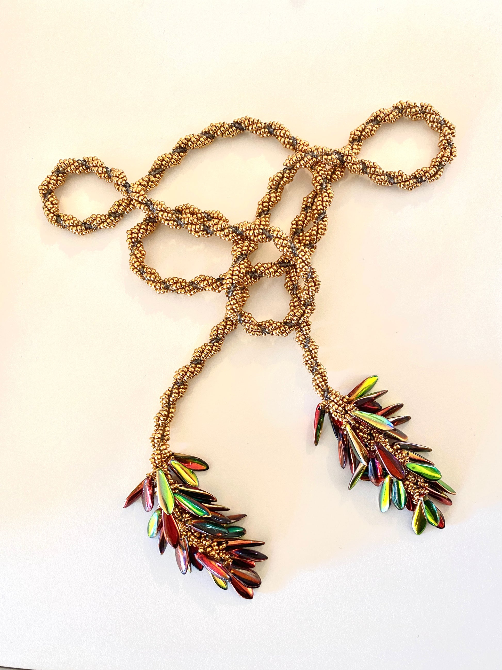 Pompons en perles irisées multicolores aux extrémités