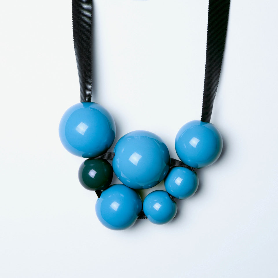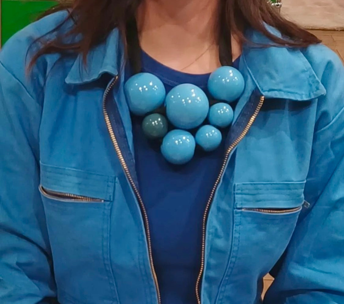 Les perles sont en faïence, moulées et émaillées par un artisan du Nord de l'Italie, avec lequel Marion Vidal collabore depuis plus de 15 ans.