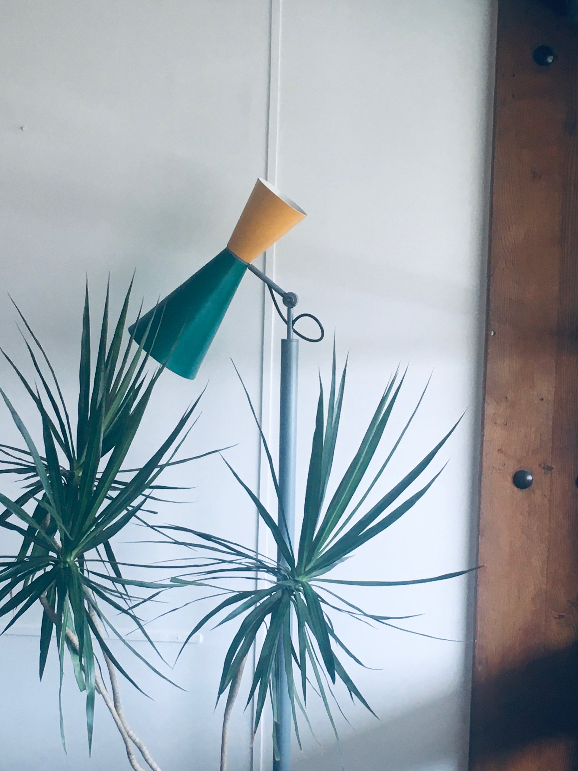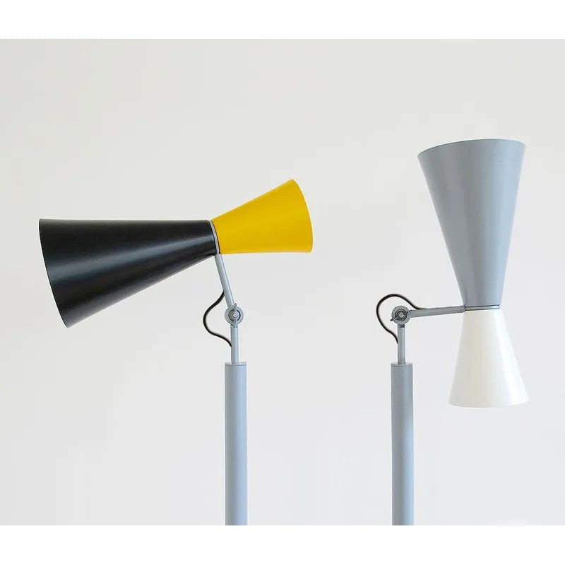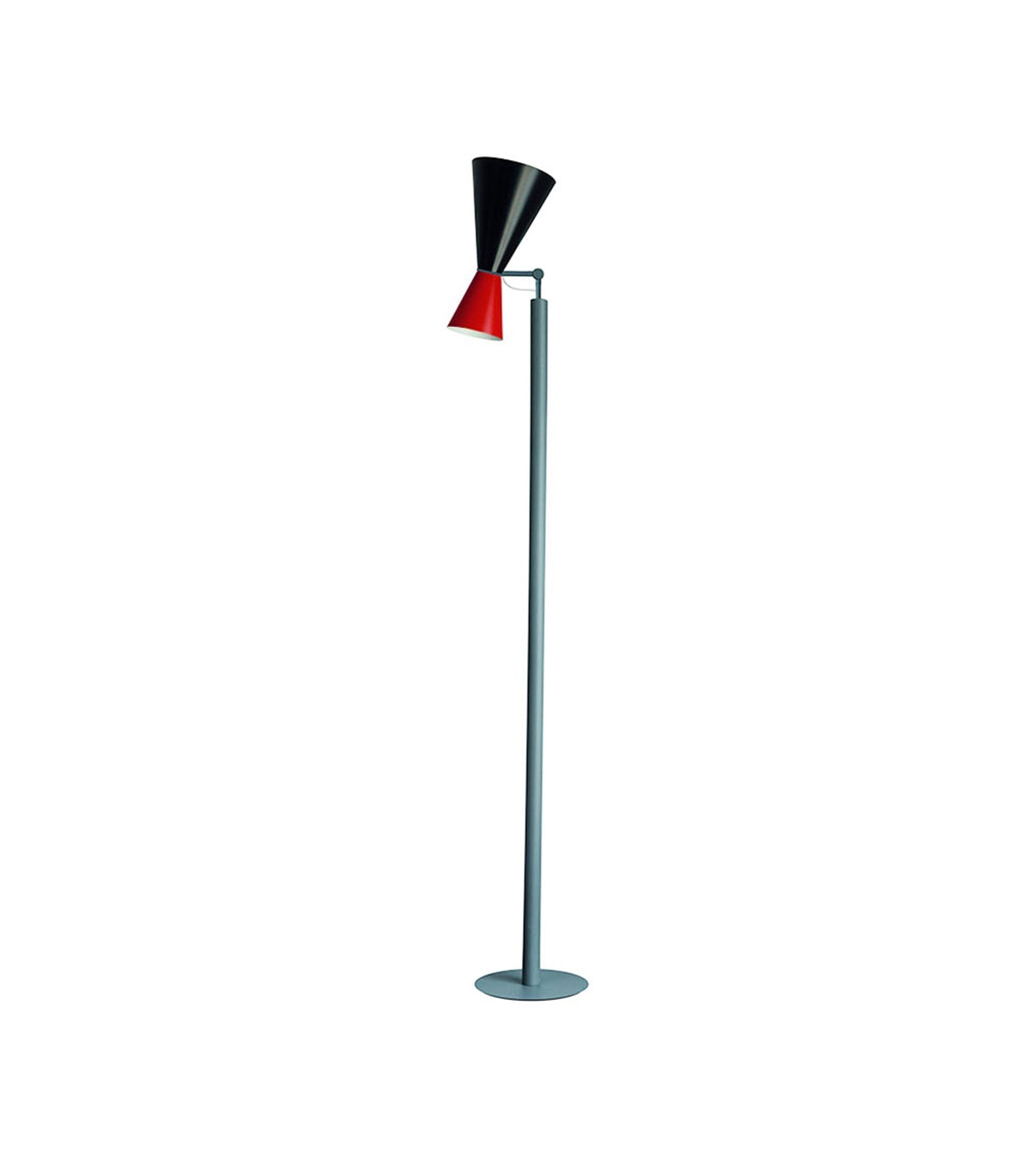 Conçu en 1963 pour le Parlement de Chandigarh en Inde, Parliament est un symbole du modernisme des années 1950, inspiré par l'éclairage industriel de l'époque. Le diffuseur réglable se compose de deux cônes symétriques ouverts pour un éclairage direct et indirect. Les finitions ont retenu le système de couleurs « claviers de couleurs » développé par le maître franco-suisse.