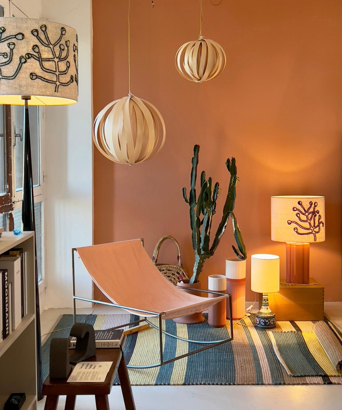 Matériaux : laiton et housse de tissu en lin de chez Pierre Frey avec scratch.